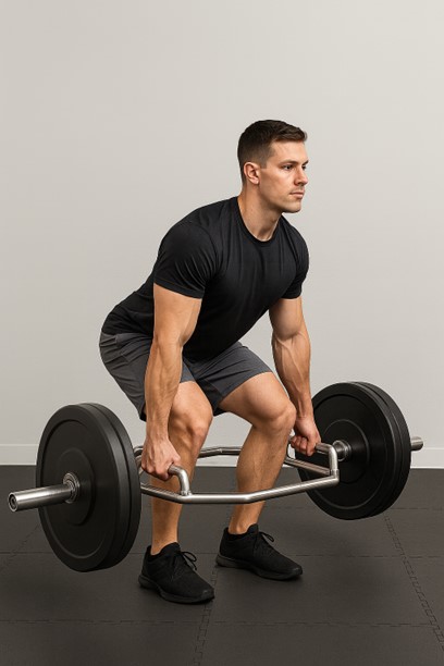 Suositeltava levytanko: Trap Bar (Hex Bar), tavallisilla tai korotetuilla kahvoilla.