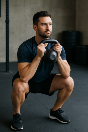 Goblet-kyykky on erinomainen liike aloittelijoille. Se vahvistaa jalkoja, parantaa ryhtiä ja lisää liikkuvuutta. Kun pidät kahvakuulaa rinnan edessä, se auttaa pitämään selän suorassa ja tukee oikeaa kyykkytekniikkaa.